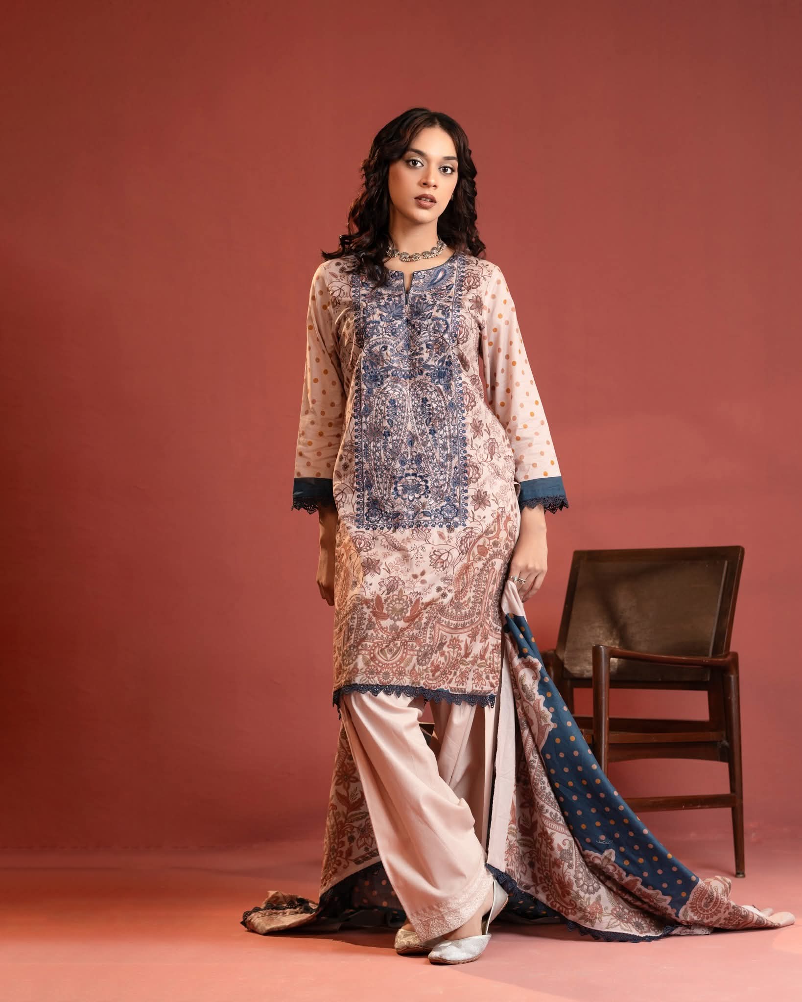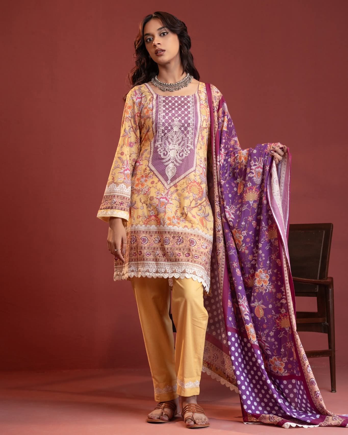 >Digital Printed Embroidered Lawn Shirt- 3.25 Yards
