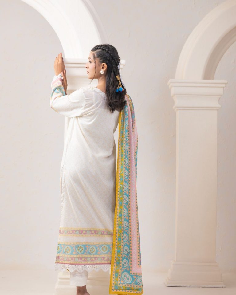 Details: A refined 3-piece lawn ensemble featuring a regular straight kameez, straight cotton pant, and a matching lawn dupatta.